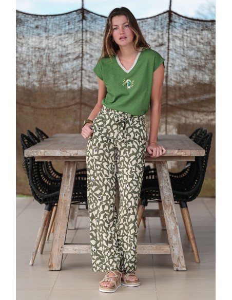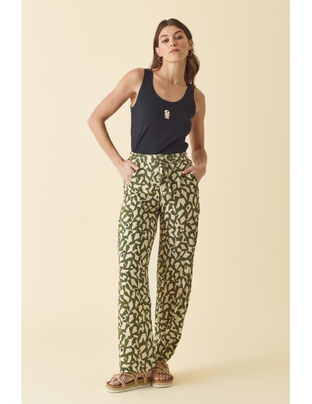 Pour une touche sauvage dans votre garde-robe cette saison, optez pour notre pantalon fluide "Gazelle" arborant un motif peau de bête, créé en France. Doté d'une ceinture amovible et d'une pampille fish en métal, ce pantalon offre une élégance discrète. Sa matière fluide et sa coupe large assurent un confort optimal, tandis que le semi-élastique au dos et les poches italiennes ajoutent une touche pratique.
