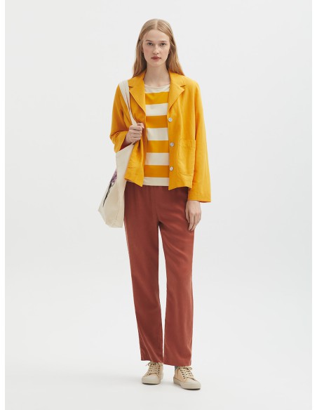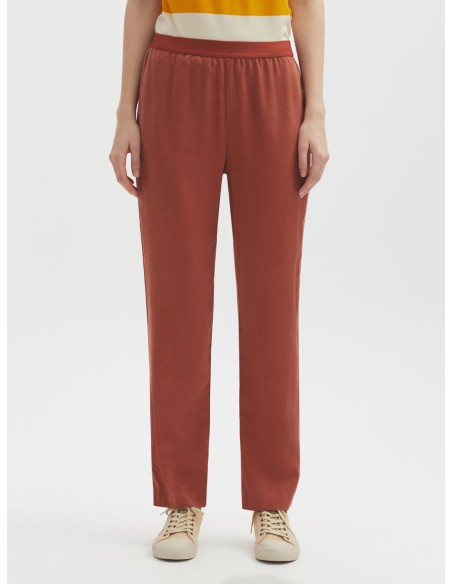 Découvrez notre pantalon basique en tissu lyocell durable, une pièce essentielle pour votre garde-robe éco-responsable. Avec sa jambe droite classique, il offre une silhouette élégante et polyvalente. La ceinture élastique fine visible ajoute une touche de confort et de modernité, tout en assurant un ajustement optimal. Parfait pour créer des looks décontractés et sophistiqués en toute occasion.